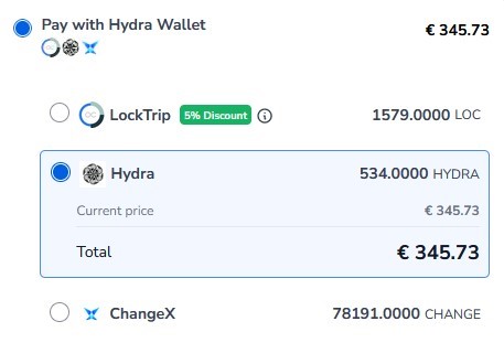 2. Within the Hydra Wallet payment section, select the specific asset you wish to use for the payment.