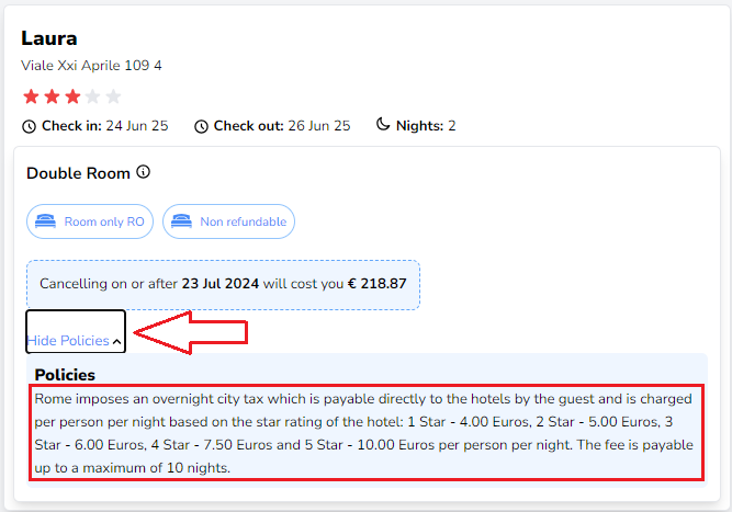All the extra fees are provided in the Policy of the selected room of your choice. These are variable charges, determined exclusively by the property, which are individual per each price quote and for these reasons cannot be included in the price ...